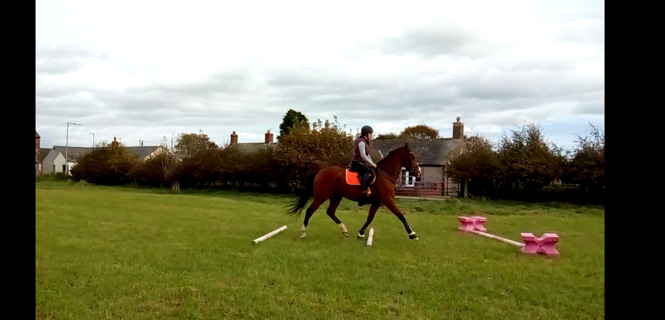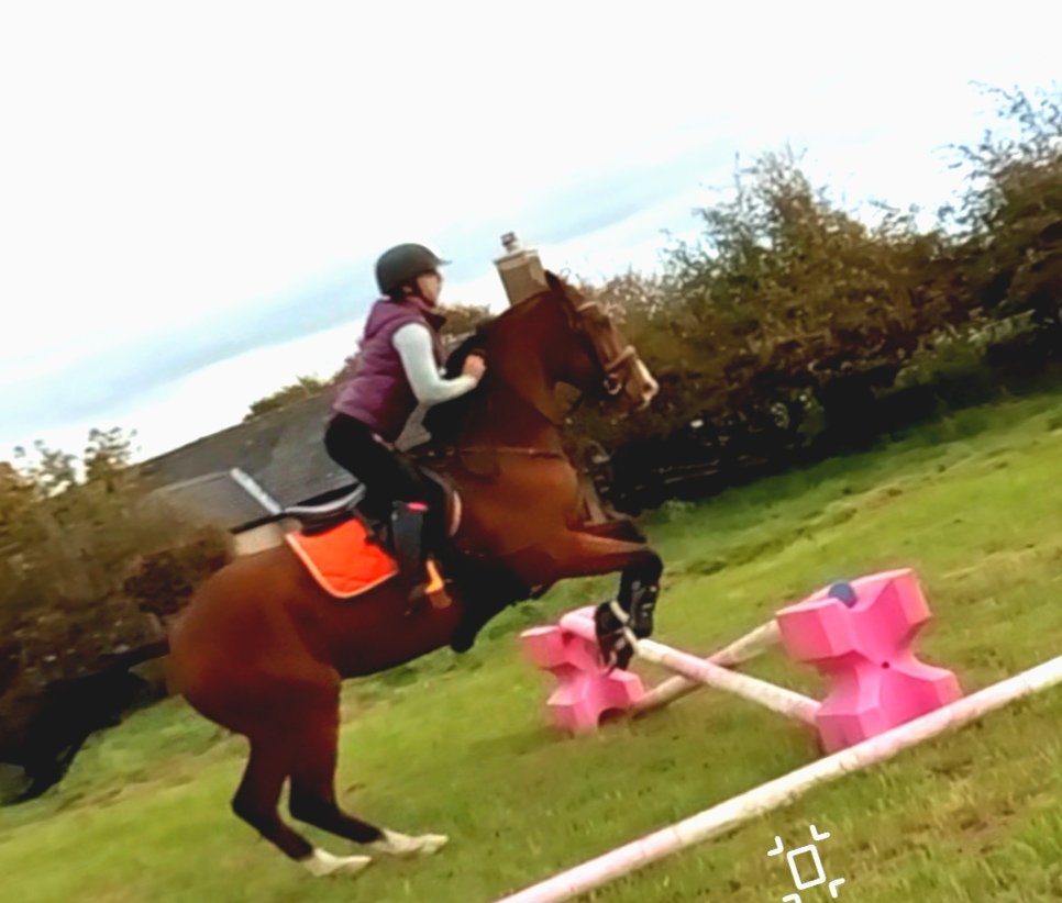 When he’d settled a little a small upright was added with two/three (I can’t remember what it wasš) strides between. I went back to approaching in trot do he could see there was a second jump. I was really happy with how he jumped and took his time through the distance without becoming tense about the second element. I then approach in canter and he kept pretty much the same rhythm form approach to getaway which is a huge improvement for him. We finished our session on this note and warmed down before dismounting (I like to dismounting after s good session as it’s almost like a reward).