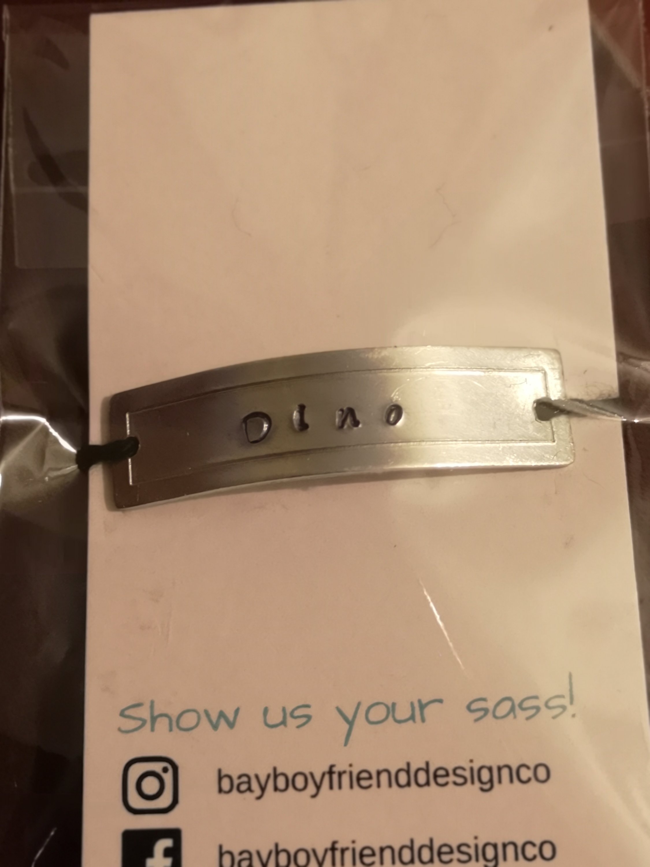 I love these cute little tail charms from Bay Boyfriend & Co. I have never seen them anywhere else so had to order one from them for Dino. They are personalised so you can add a name or even a something that is special to you like a date.