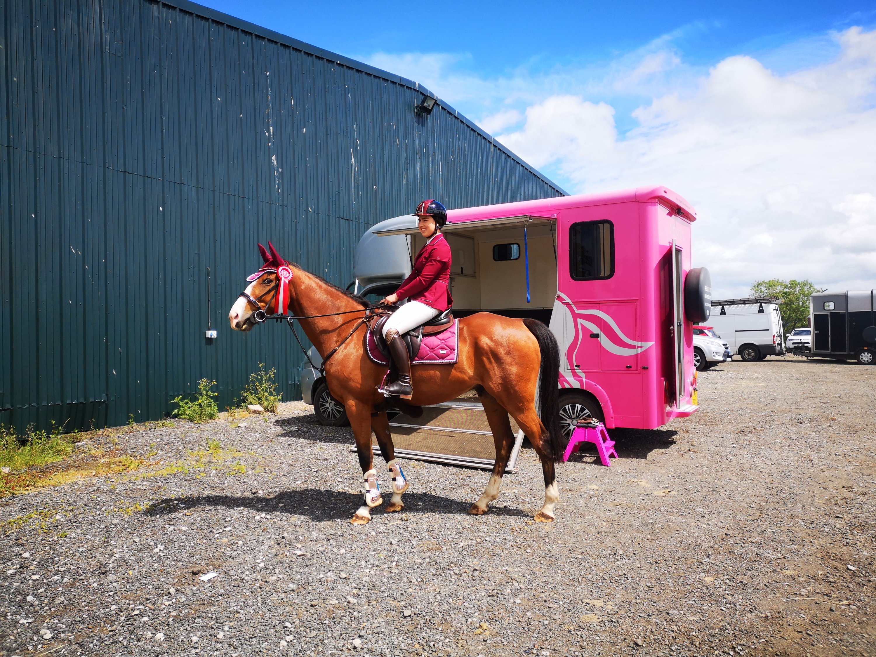Sunday morning I was off to work at 6.30am to feed round everyone there. Surprisingly I felt super awake even though I felt like I really needed a lie in all week. After work I fed my lot and went home to pack the horsebox for s show!!I decided to take Maisie showjumping to see what she’d do. I knew she’d have some stops but just wanted to get her round a good course and away from home. We headed off to Greenlands around 10.30 am to jump the 65cm. First time competing in the outdoor arena for both of us there but it rode brilliantly. Maisie was such a star in the warm up arena working in beautifully and jumping the practice jumps with loads of confidence.