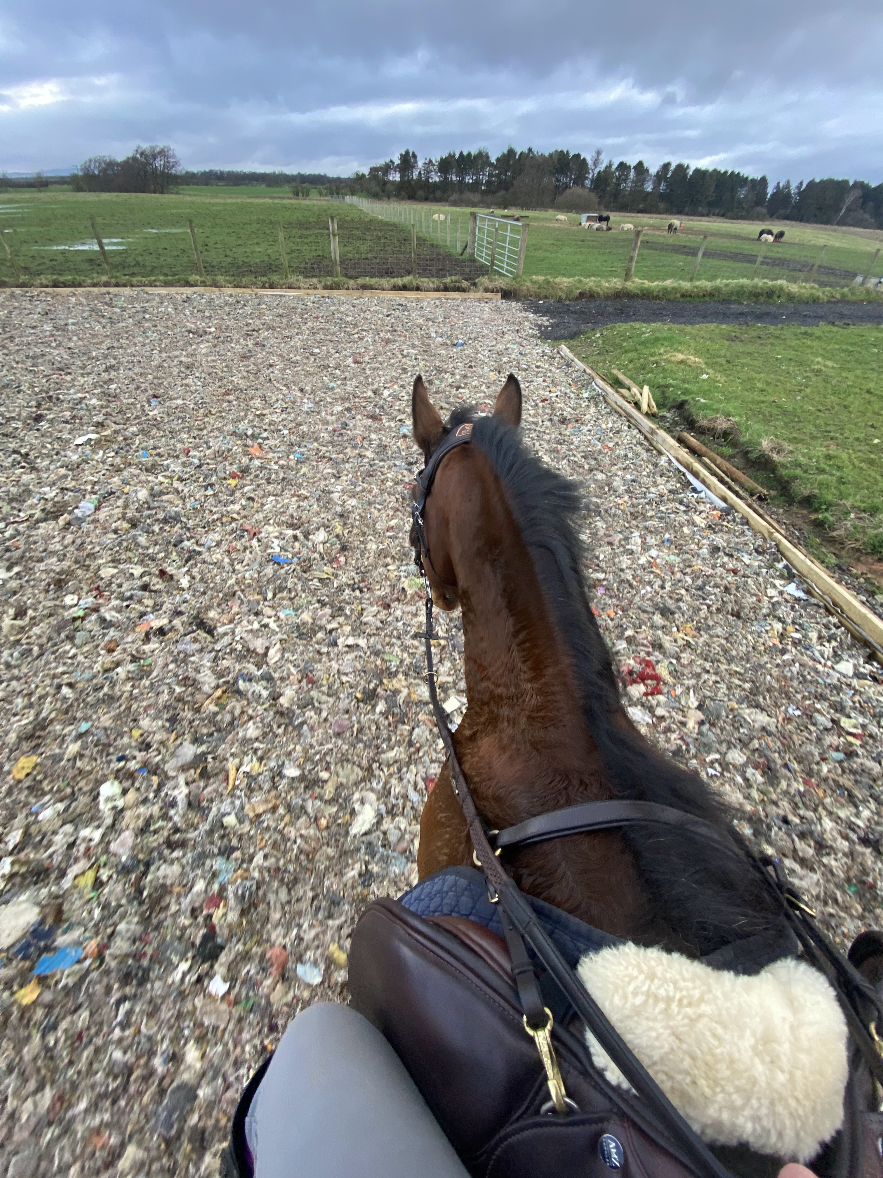 Lets get into what I have actually been doing, especially with the horses recently. I started pretty slow not putting too much pressure on myself to do loads to start with, it was winter so let face reality we don’t get much of a chance to get out on our horses even if we try. We just did light work and then built it up from there. The arena at home finally got the surface laid, it felt like it took ages to get to that point but it was probably me being impatient. It has made my life so much easier!! Plus we can now jump whenever we want to as I don’t have to worry about ruining the fields 🙈 The arena has been a super exciting moment recently.