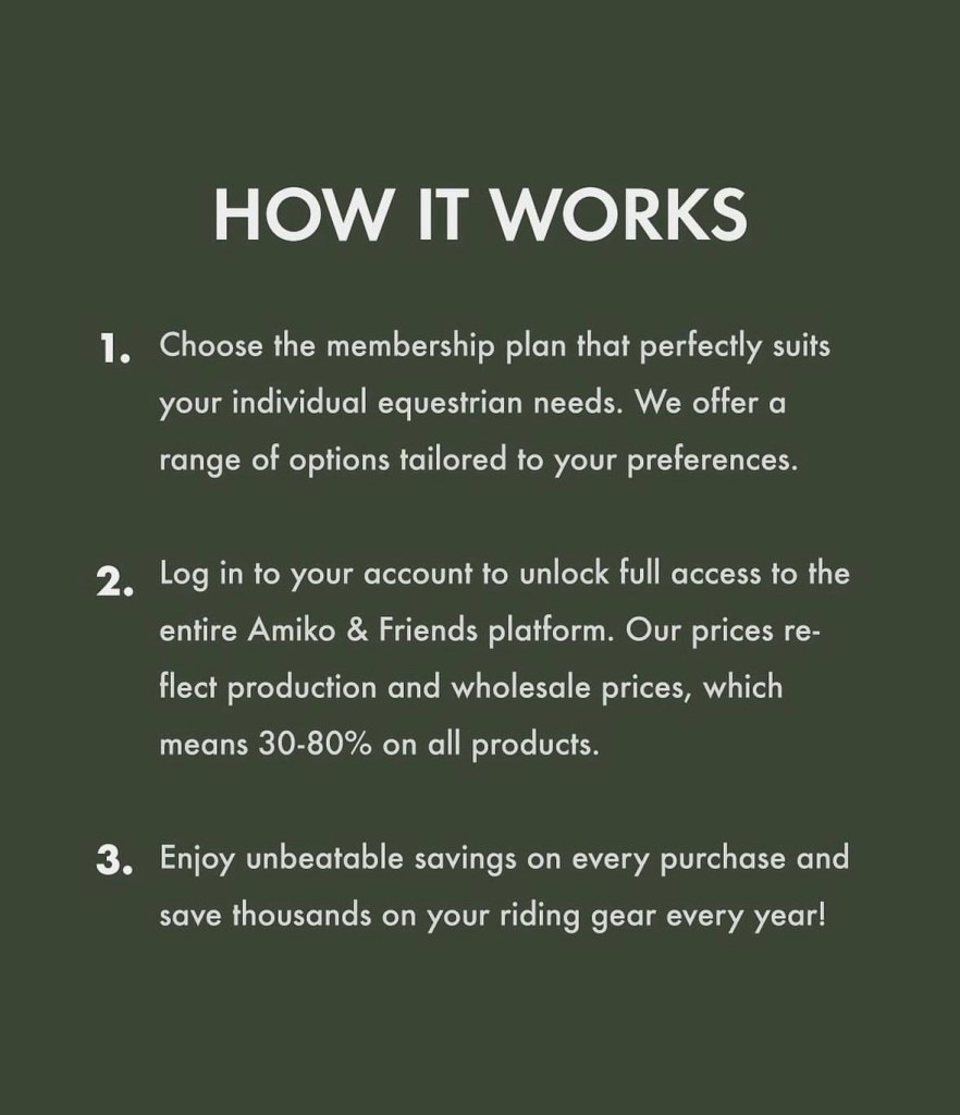 Amiko and Friends are a company providing discounted equestrian products to their members. The discounts range from 30% to 80%!! Products include horse wear, rider wear, care products, dog items and even big brands like PS of Sweden and Ariat! I think this is a truly fantastic idea and makes for a great gift for someone who loves equestrian fashion that may be that bit more difficult to buy for.
